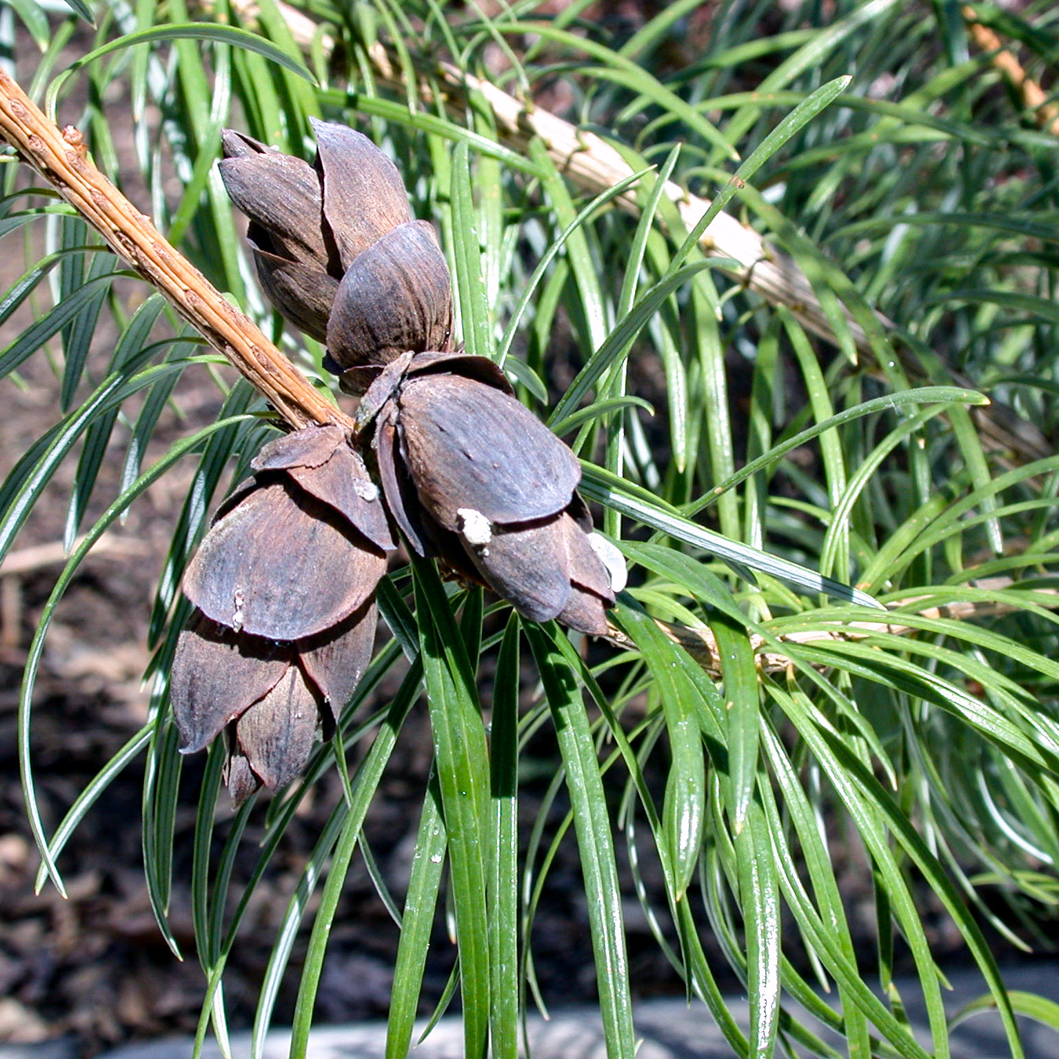 | "Morphology and anatomy of pollen cones and pollen in Podocarpus gnidioides, Carrière (Podocarpaceae, Coniferales)". Bulletin of the Cupressus Conservation Projekt, Vol. 4, N° 1 Veit M. Dörken & Hubertus Nimsch 25.06.2015 |